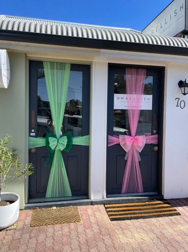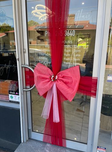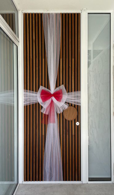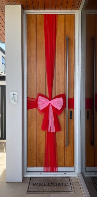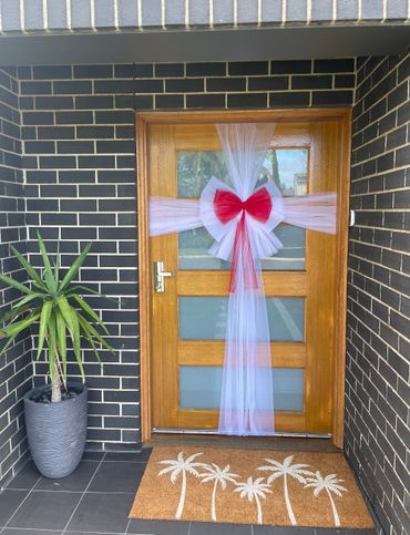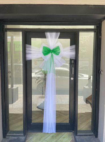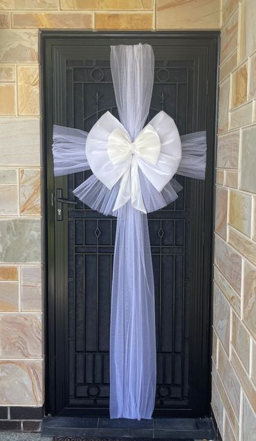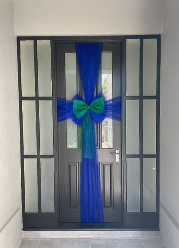 Add a touch of elegance to your celebrations with our handcrafted door bows, perfect for any occasion! Each bow is custom made to suit your door size and preferred color, ensuring a unique and stunning look for your special event.